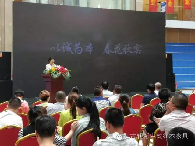 紅古軒蘭州專賣店韋總在開幕式上,對各位嘉賓朋友的蒞臨致予最崇高的敬意,并與嘉賓朋友們分享了紅古軒品牌的產(chǎn)品特色與氣質(zhì)。她表示,紅古軒尊貴的品牌氣質(zhì),以及一流的服務(wù),定能給蘭州帶來別樣的紅木藝術(shù)。